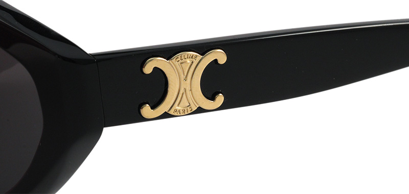 キャットアイシェイプの鋭いシェイプであり、シャープで洗練された雰囲気。トレンド感のあるフレームで、顔立ちがキリっと見えスタイリッシュな印象に。テンプルに刻印させたセリーヌのロゴも印象的。