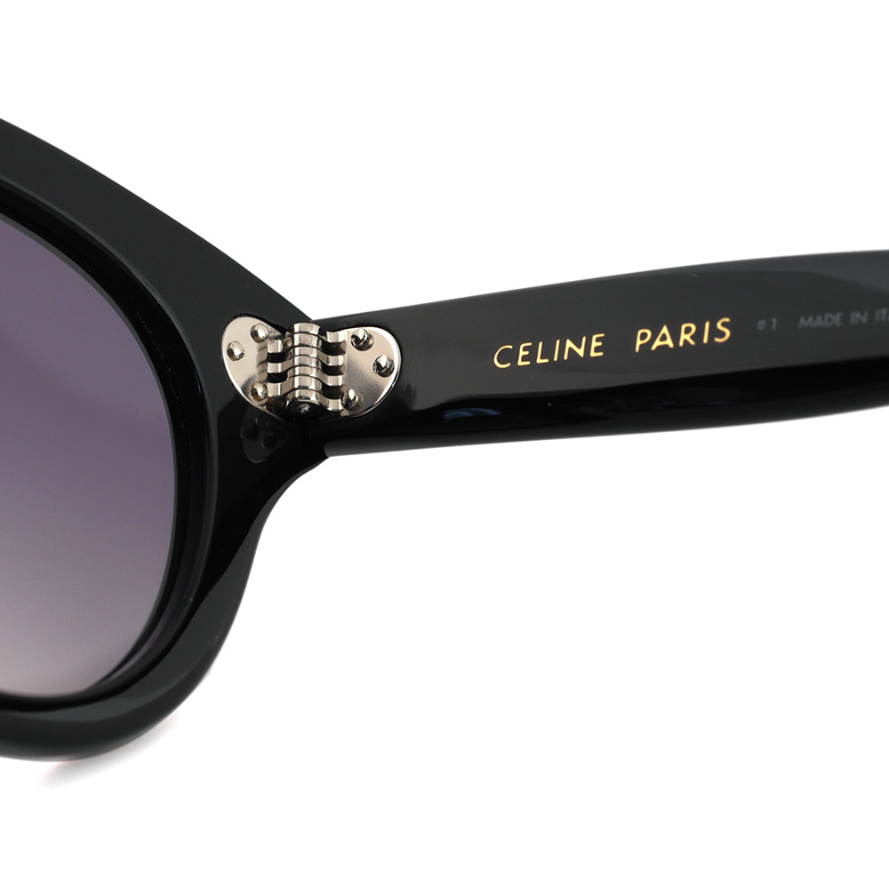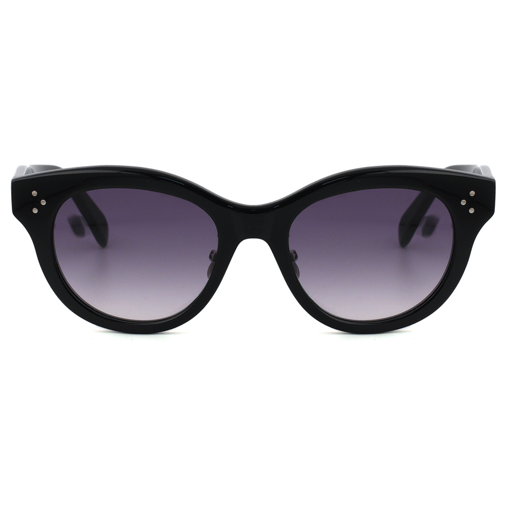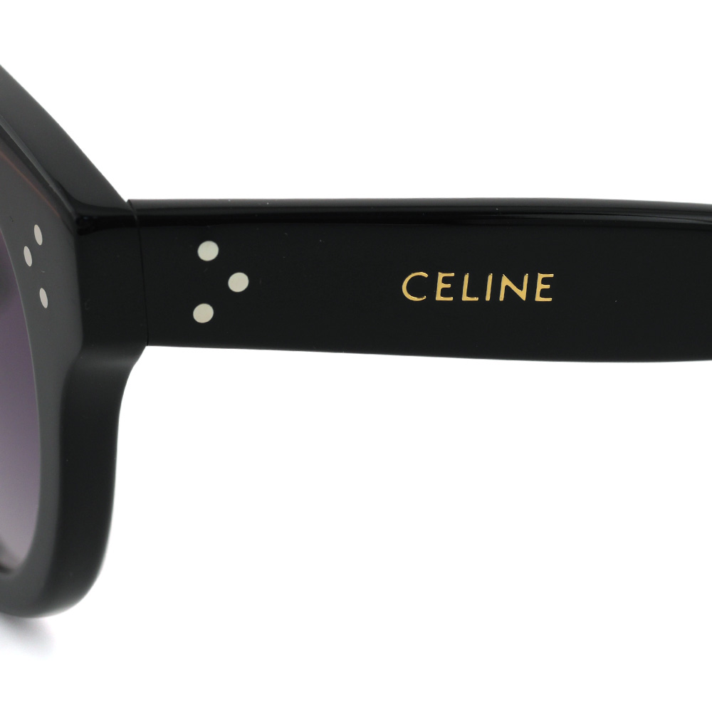 程よいボリュームのあるスタイリッシュなキャットアイシェイプ、セリーヌのアイコンでもある3点リベットがアクセント。金属製パッド付きで掛け心地も良いサングラスです。 サイズ レンズ横幅51mm 縦幅42mm ブリッジ幅20mm フレーム幅148mm col.01B ブラック ※サイズの数値については若干の誤差がある可能性がございます ※柄のあるフレームの色味は個体差がございます